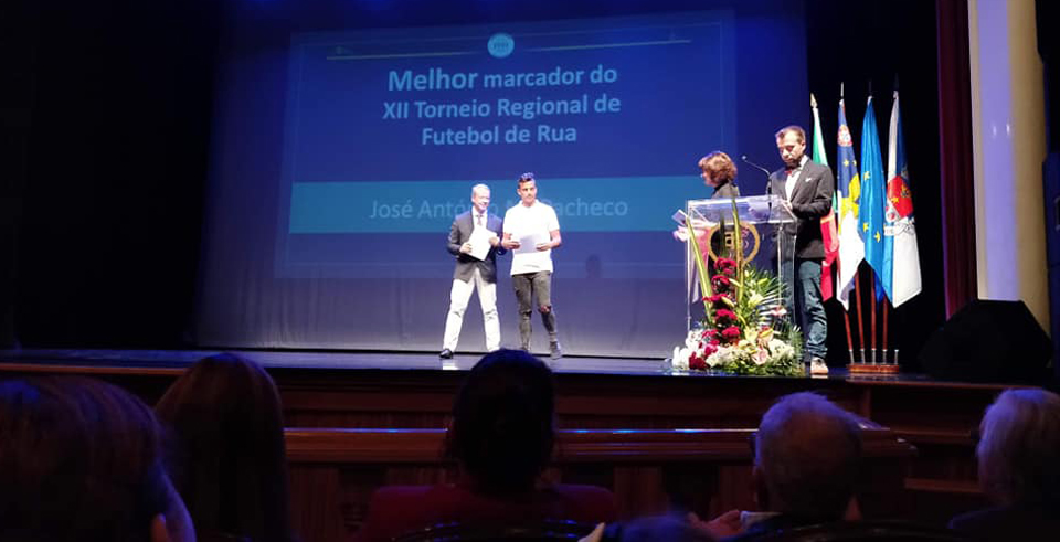 Eleito Melhor Marcador do XIII Torneio Regional de Futebol de Rua na edição de 2018, José António Pacheco subiu ao palco do Teatro Ribeiragrandense para receber o prémio e diploma de mérito pela sua performance enquanto atleta de futebol de rua, feito reconhecido por aquele estabelecimento de ensino.