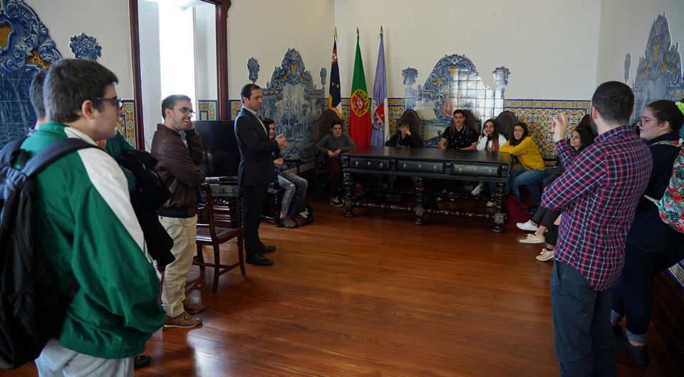 Os alunos foram recebidos pelo presidente da autarquia, Alexandre Gaudêncio, e a acompanhar a visita esteve o técnico de turismo, Elton Medeiros, que fez uma breve resenha histórica sobre o edifício dos Paços do Concelho, a evolução da heráldica do município e outros assuntos de interesse.